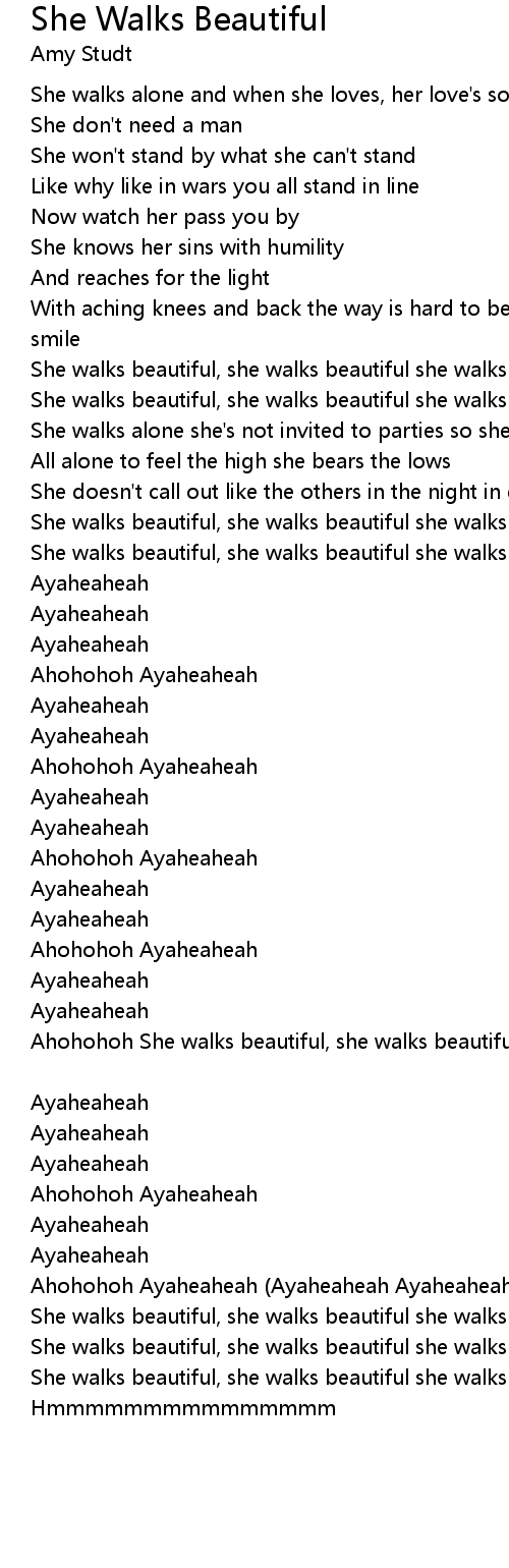 Ahohohoh She walks beautiful, she walks beautiful she walks beautiful by herself |