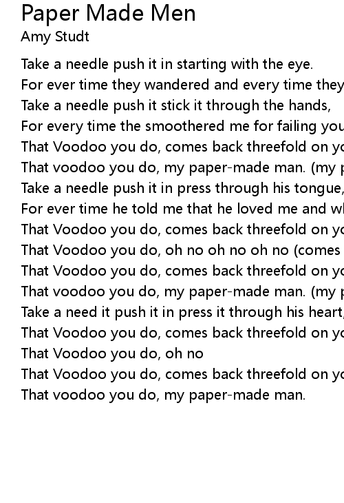 That voodoo you do, my paper-made man. (my paper made man)