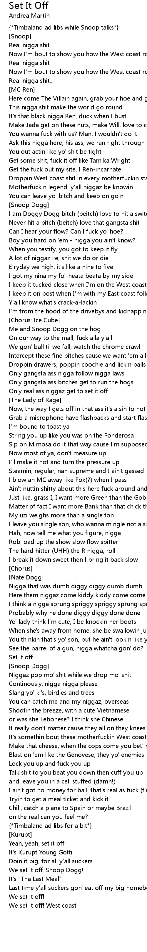 Only real ass niggaz get to set it off |
