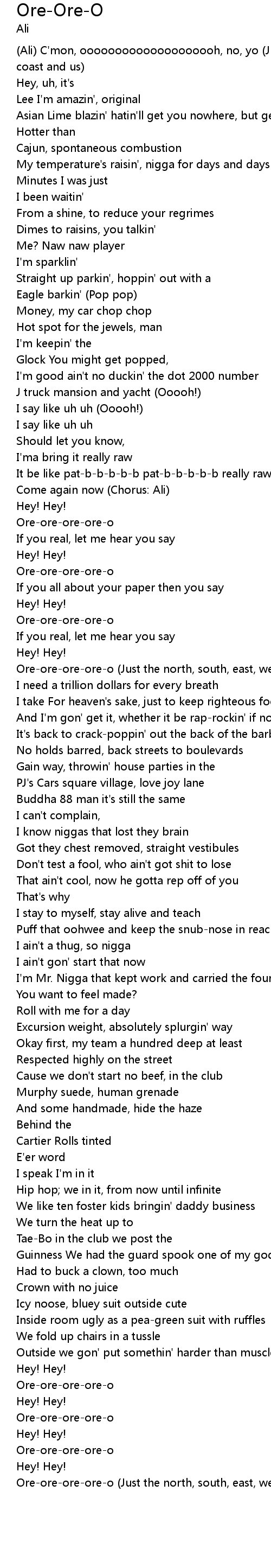 Ore-ore-ore-ore-o (Just the north, south, east, west coast and us) (Ali) |