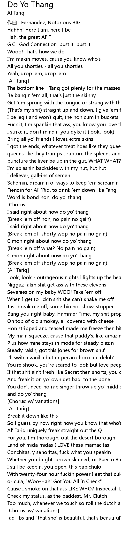 | Too much, whenever we touch so roll the dutch and do yo' thang | |