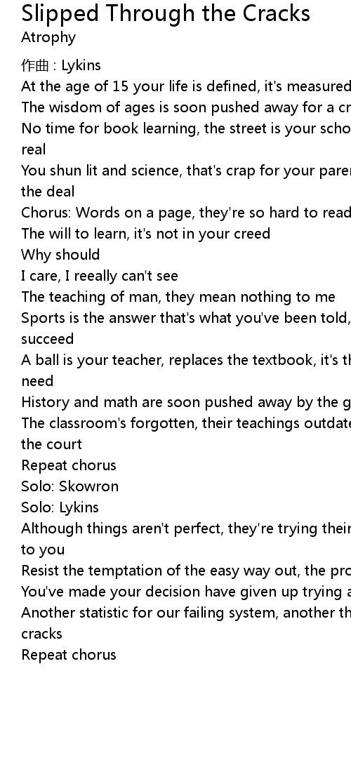| The classroom' s forgotten, their teachings outdated, you live by the rules of the court | |