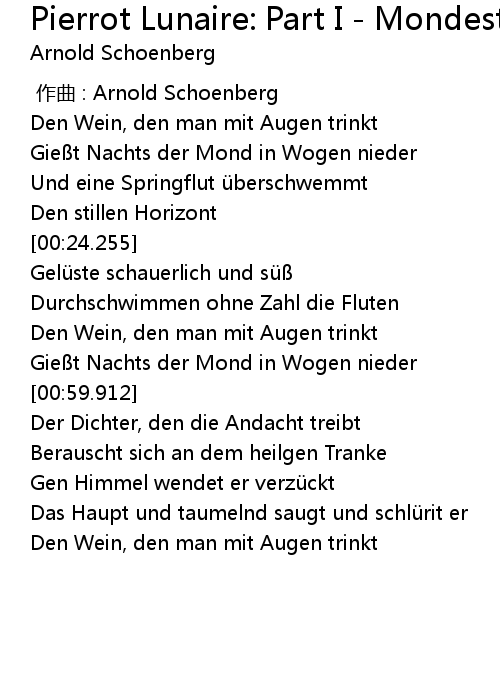 | Song | Pierrot Lunaire: Part I - Mondestrunken |