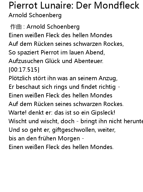 | [00:09.469] | So spaziert Pierrot im lauen Abend, |