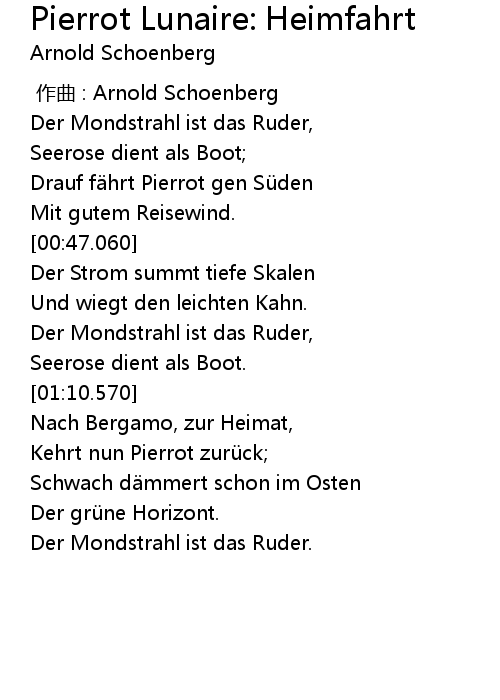 | Song | Pierrot Lunaire: Heimfahrt |