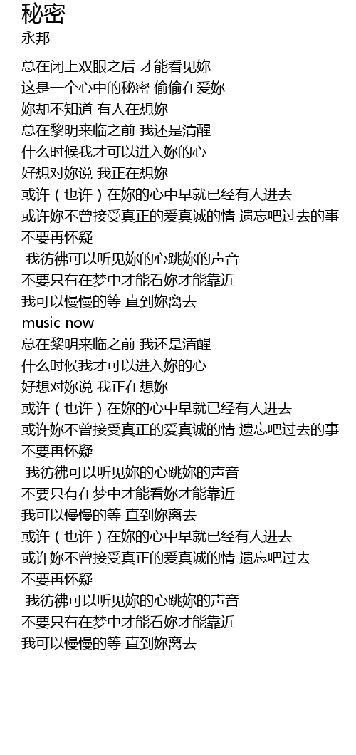 | [00:22.550] | 这是一个心中的秘密 偷偷在爱妳 |