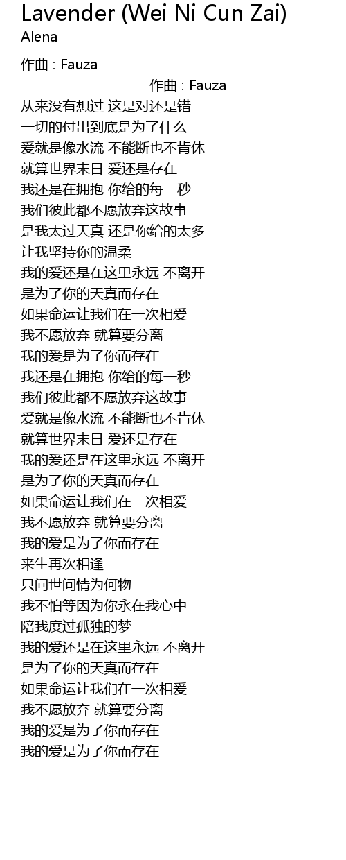 | [02:40.000] | wo de ai shi wei le ni er cun zai |
