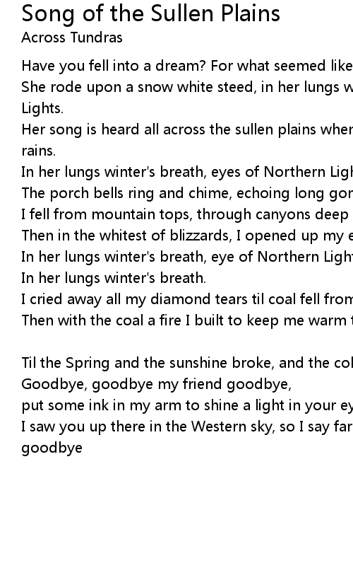 Her song is heard all across the sullen plains whenever it snows, whenever it rains.