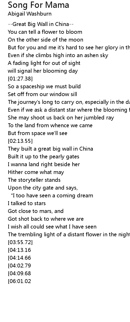 | [05:37.68][04:13.16][03:55.92] | They built a great big wall in China |