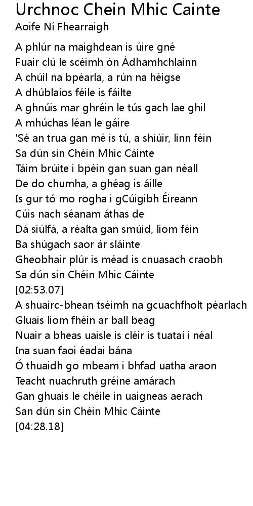 | [01:20.09] | Sa dún sin Chéin Mhic Cáinte |