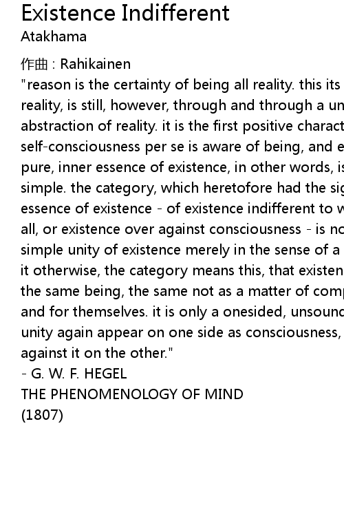 | "reason is the certainty of being all reality. this its inherent nature, this reality, is still, however, through and through a universal, the pure abstraction of reality. it is the first positive character which self-consciousness per se is aware of being, and ego is, therefore, merely the pure, inner essence of existence, in other words, is the category bare and simple. the category, which heretofore had the significance of being the inmost essence of existence - of existence indifferent to whether it is existence at all, or existence over against consciousness - is now the essential nature or simple unity of existence merely in the sense of a reality that thinks. to put it otherwise, the category means this, that existence and self-consciousness are the same being, the same not as a matter of comparison, but really and truly in and for themselves. it is only a onesided, unsound idealism which lets this unity again appear on one side as consciousness, with a reality per se over against it on the other." | |