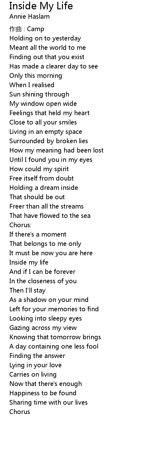 | Song | Inside My Life |