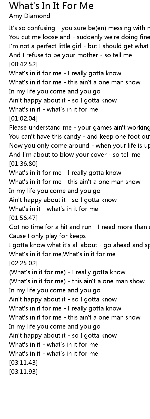 | [03:02.15] | What s in it what s in it for me |