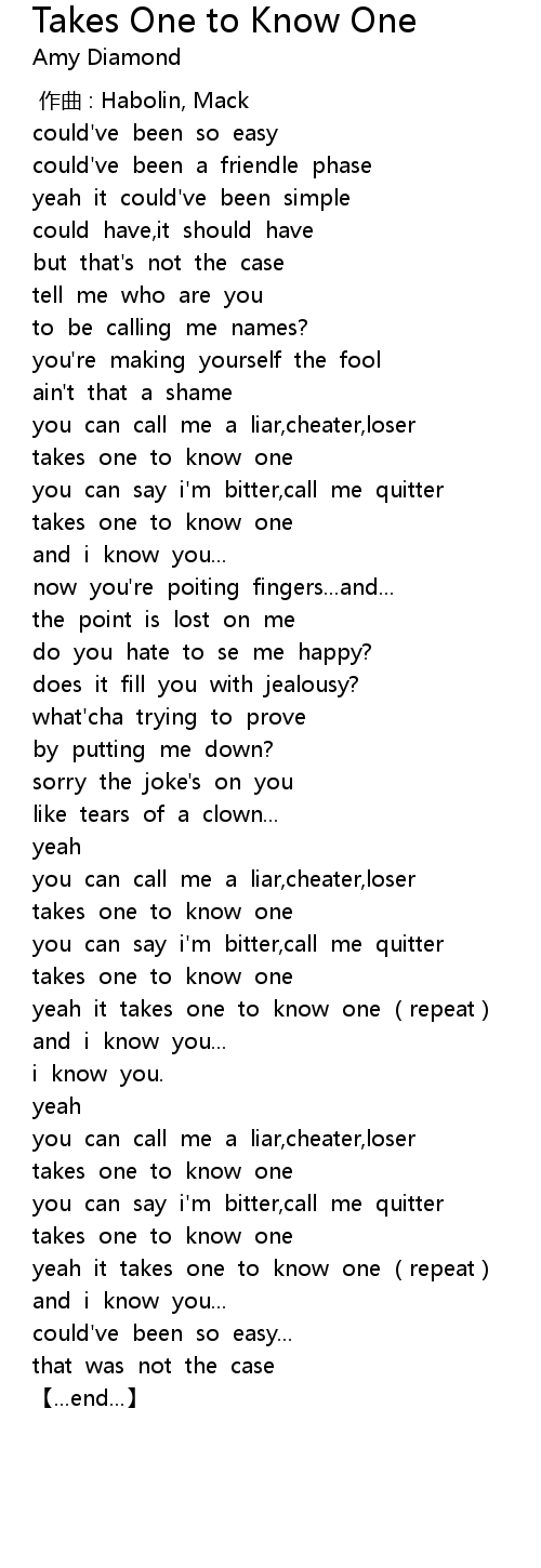 | [03:32.818] | yeah it takes one to know one (repeat) |