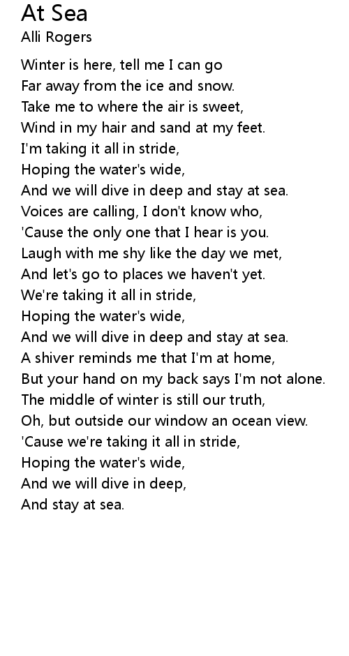 And we will dive in deep and stay at sea. |