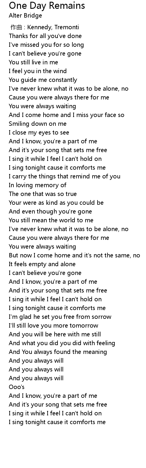 | [00:00.00] | 作曲 : Kennedy, Tremonti |