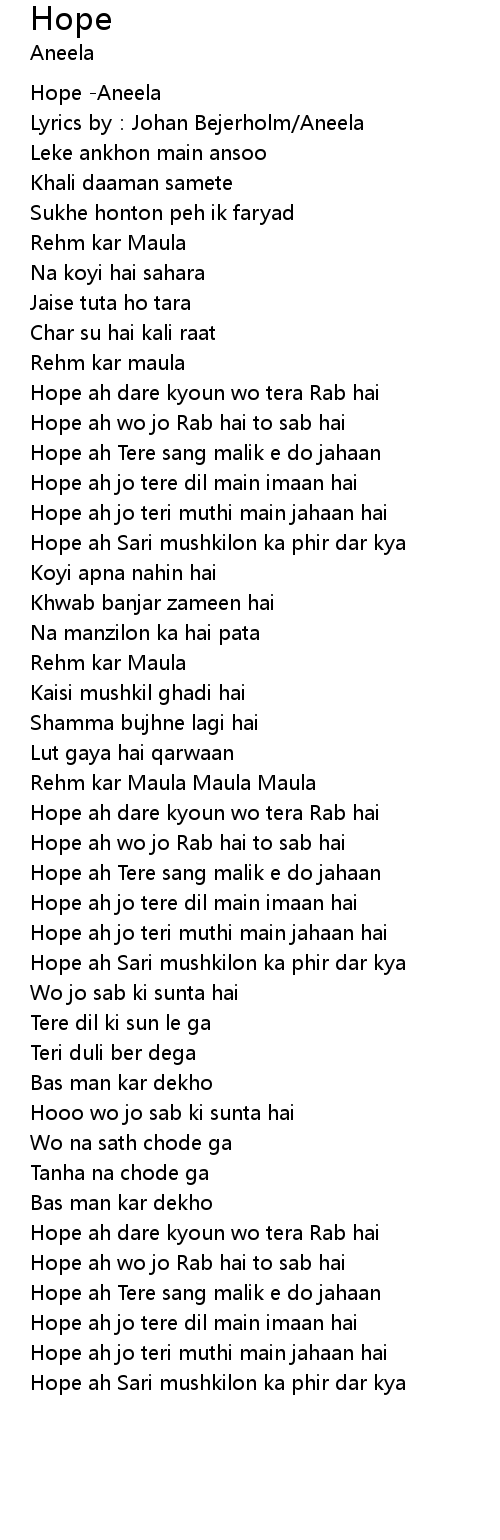 | [00:40.61] | Hope ah wo jo Rab hai to sab hai |