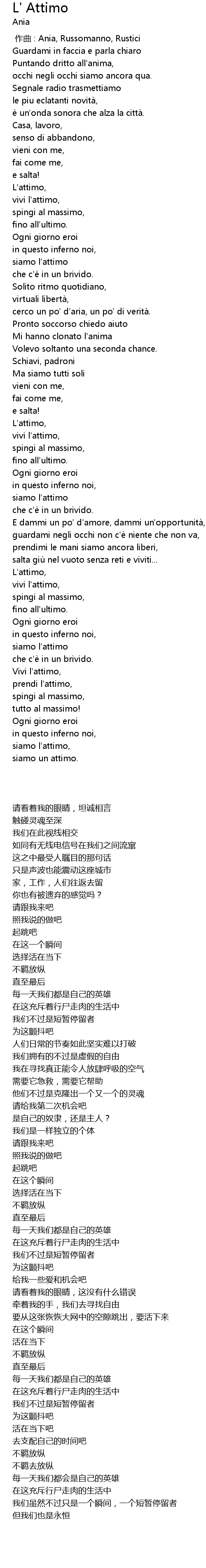 | [02:15.718] | E dammi un po' d' amore, dammi un' opportunità, |