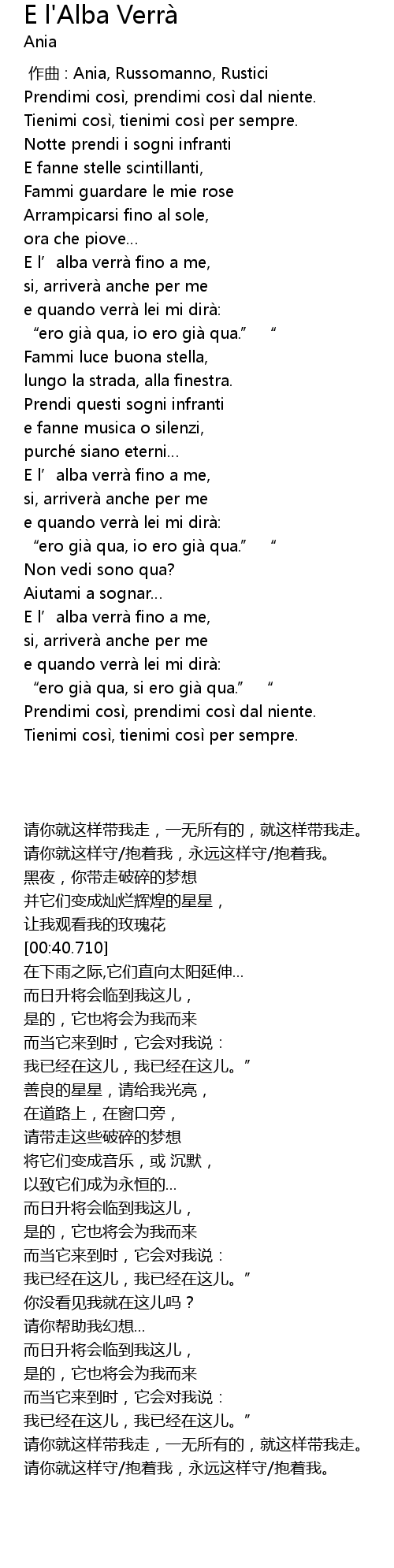 | [01:55.740] | E l' alba verra fino a me, |