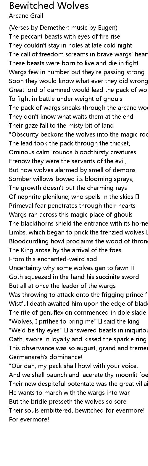 | Song | Bewitched Wolves |