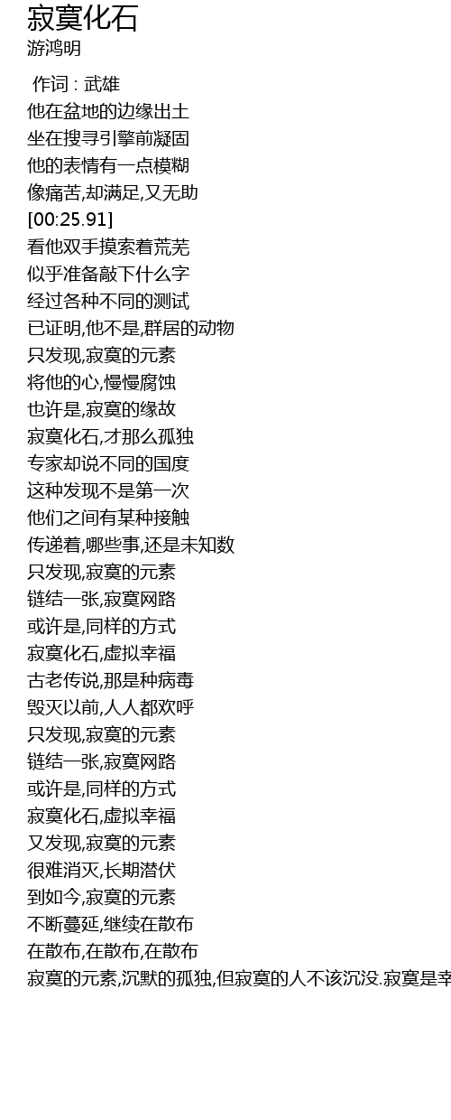 | [01:46.89] | 寂寞化石,虚拟幸福 |