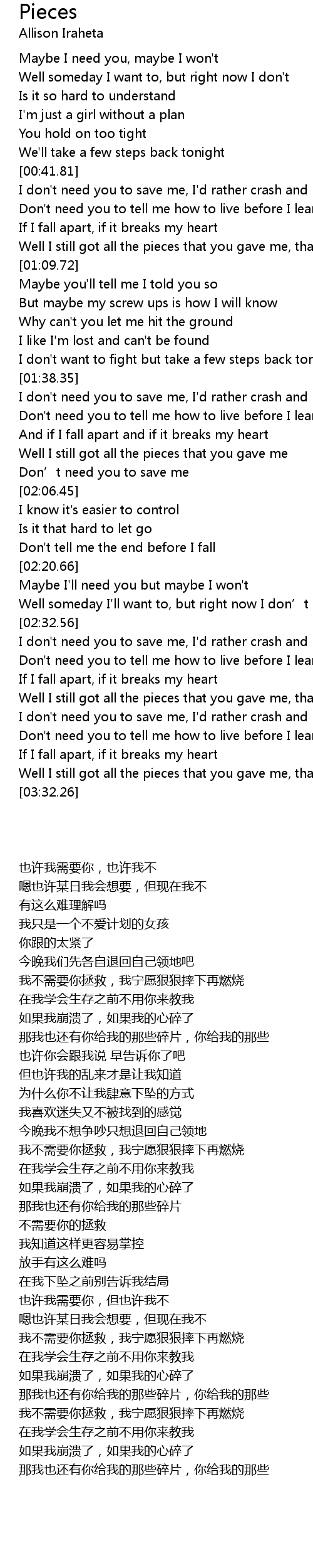 | [01:56.53] | Well I still got all the pieces that you gave me |