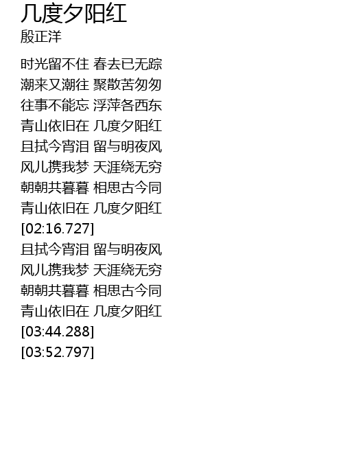 | [03:23.197] | 青山依旧在 几度夕阳红 |