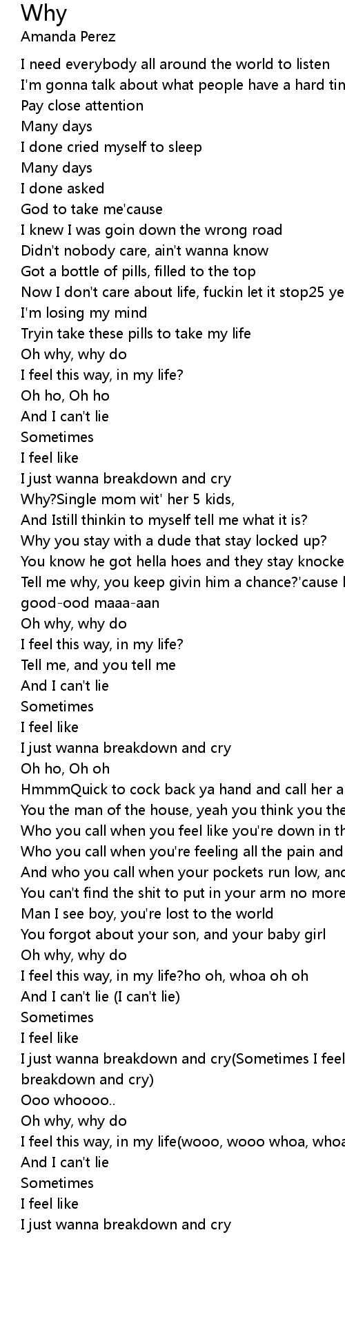 I just wanna breakdown and cry(Sometimes I feel like I wanna breakdown, just breakdown and cry) |