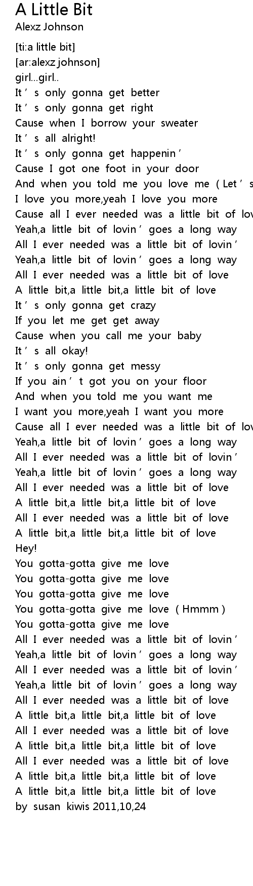 | [03:18.954] | A little bit,a little bit,a little bit of love |