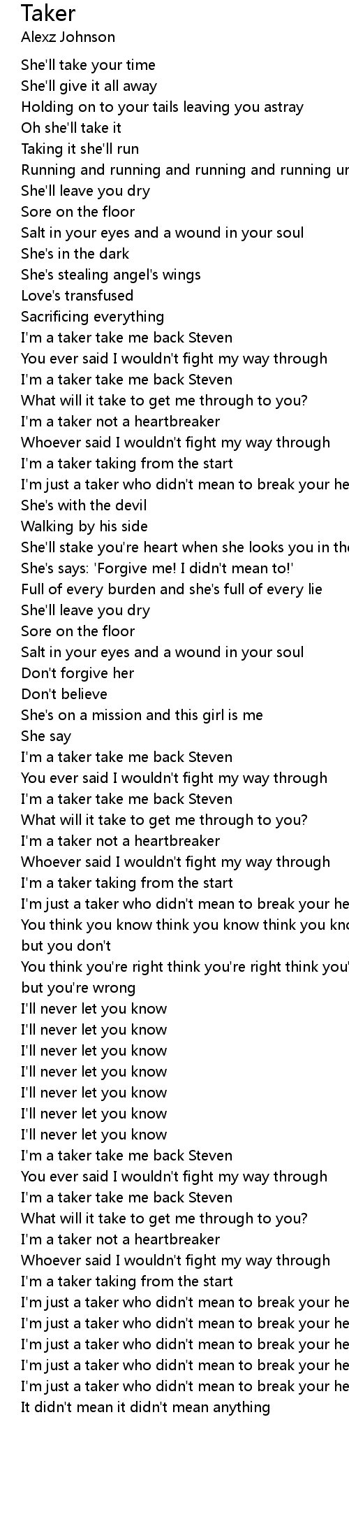 I'm just a taker who didn't mean to break your heart |