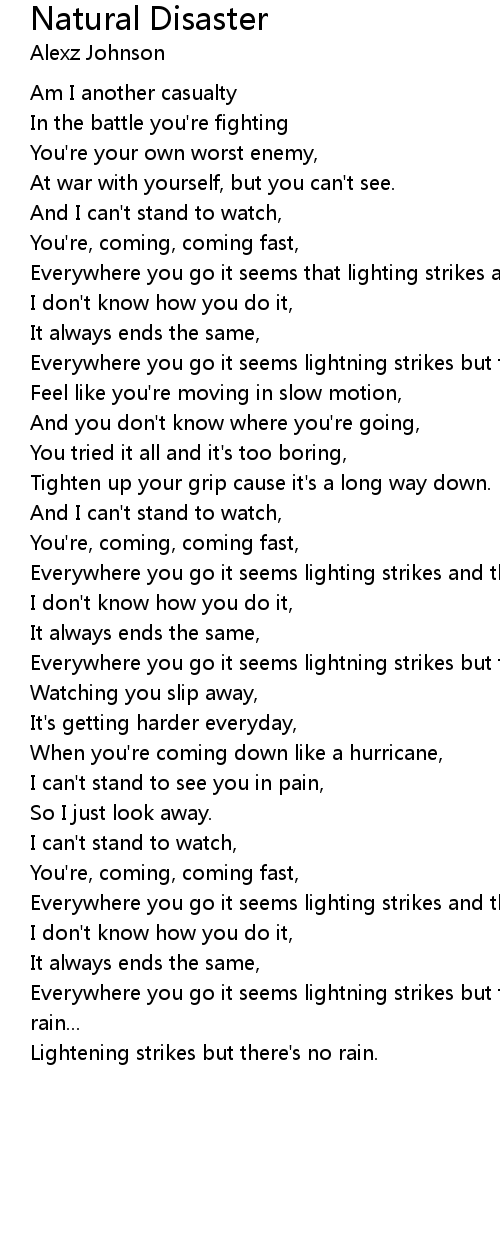 Everywhere you go it seems lightning strikes but there's no rain, no rain. |