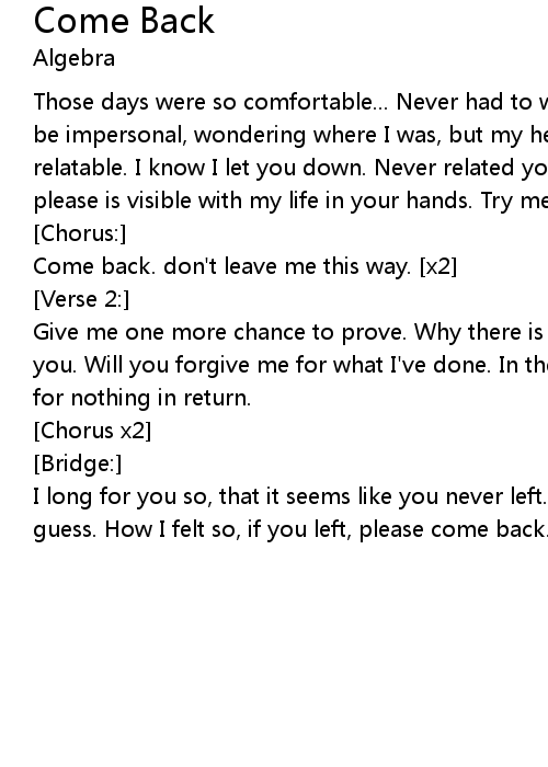 | Come back. don't leave me this way. [x2] | |