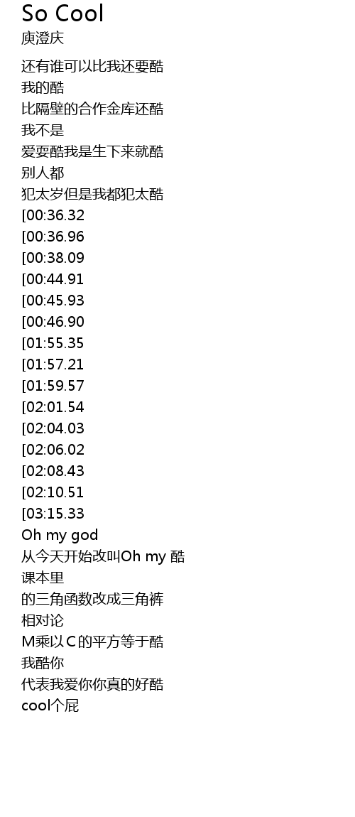 | [02:52.91][02:04.03][01:02.01] | So Cool! |