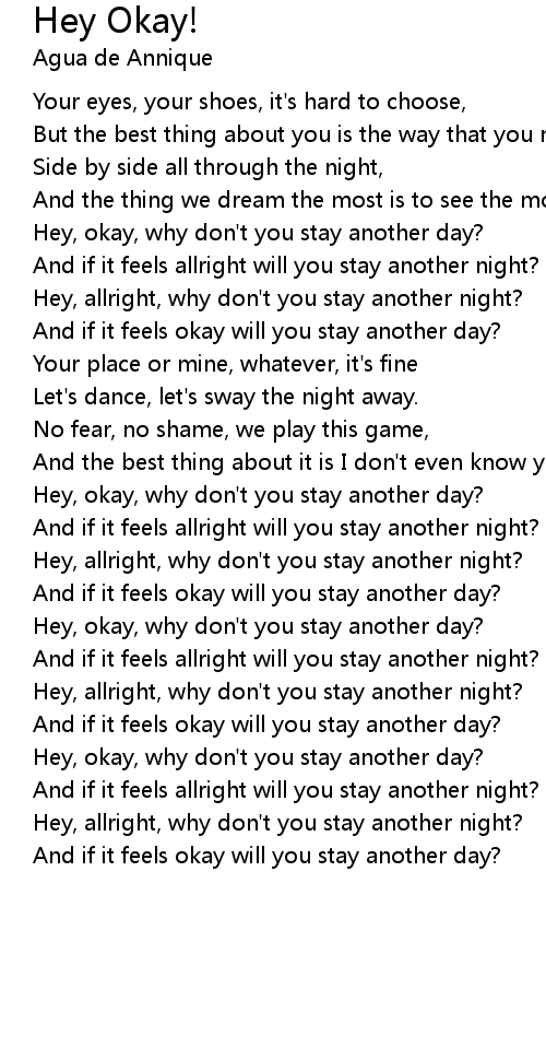 And if it feels okay will you stay another day? |