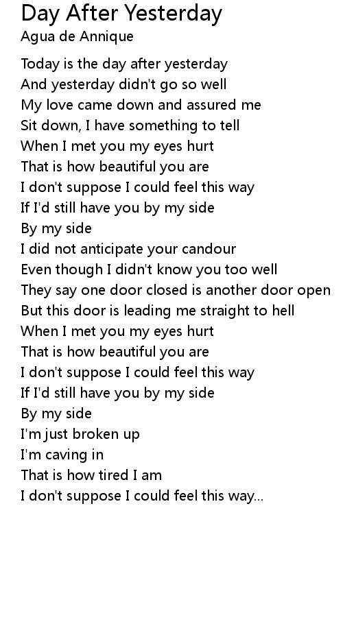 Day After Yesterday Lyrics