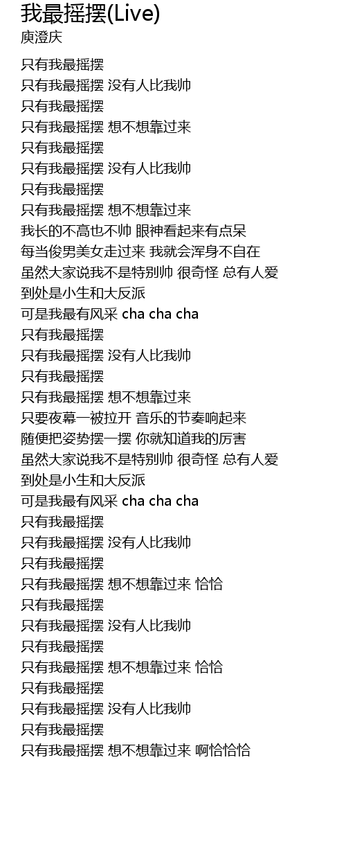 | [00:32.52] | 只有我最摇摆 没有人比我帅 |