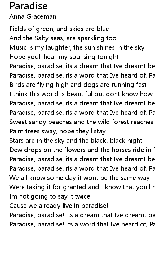 Paradise, paradise! Its a word that Ive heard of, Paradise |