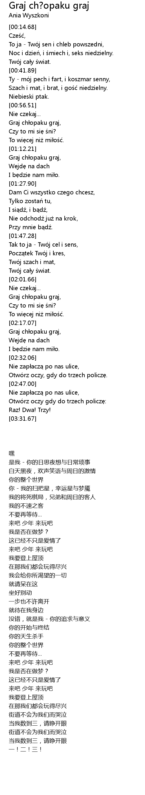 | [00:47.10] | Szach i mat, i brat, i go niedzielny. |