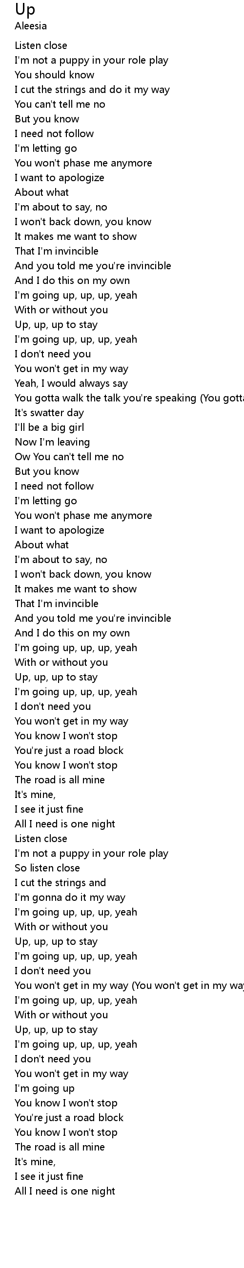 | I'm going up, up, up, yeah | |