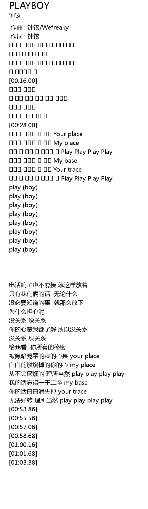 | [00:00.000] | 作曲 : 钟铉/Wefreaky |