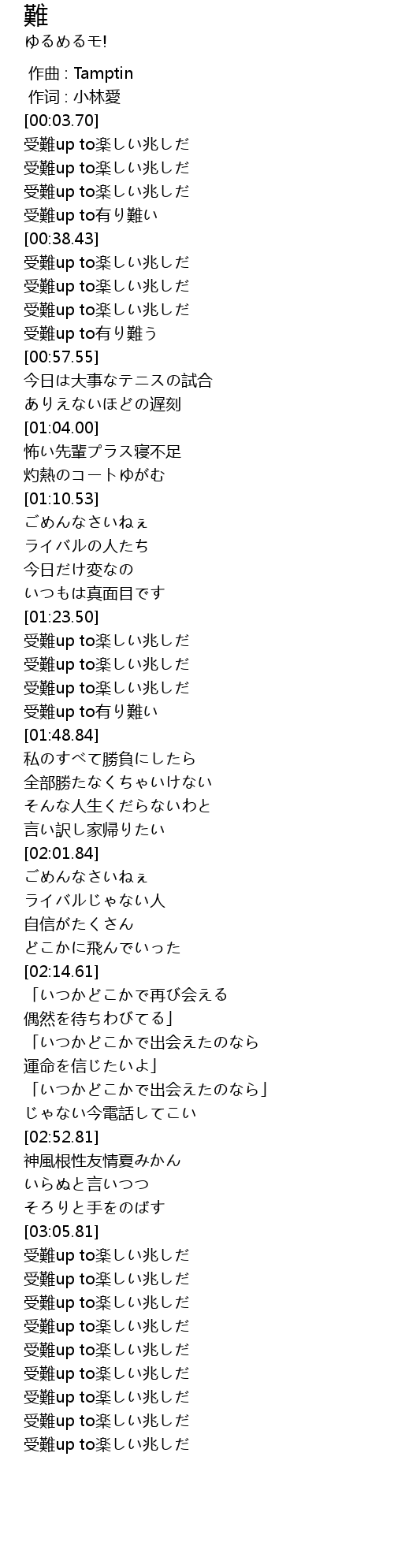 | [03:19.03] | 受難up to楽しい兆しだ |