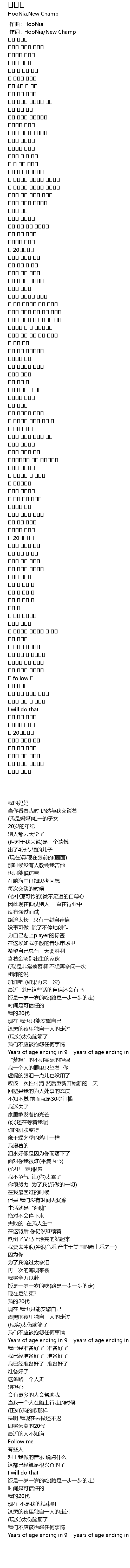 | [00:01.000] | 作词 : HooNia/New Champ |