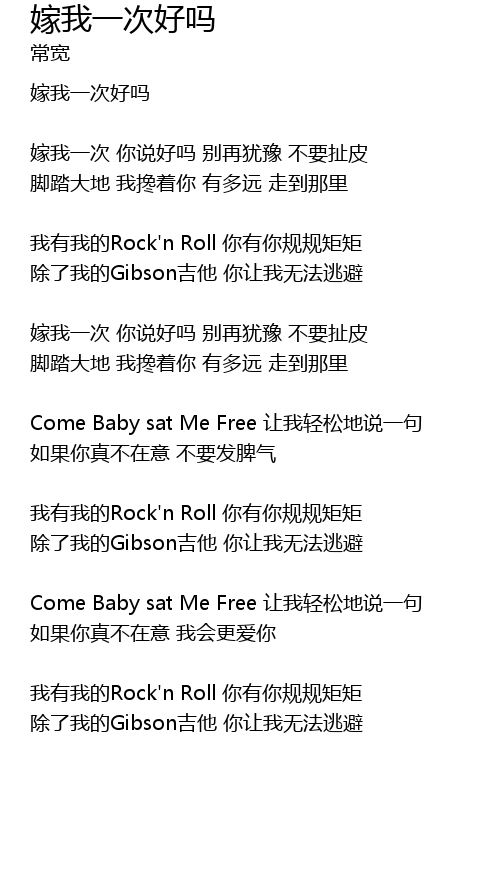 | 嫁我一次 你说好吗 别再犹豫 不要扯皮 | |