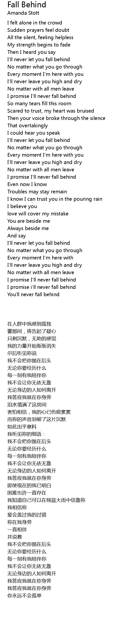 I promise i'll never fall behind |