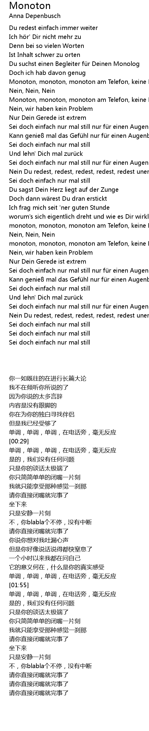 | [01:00] | Sei doch einfach nur mal still nur fü r einen Augenblick |
