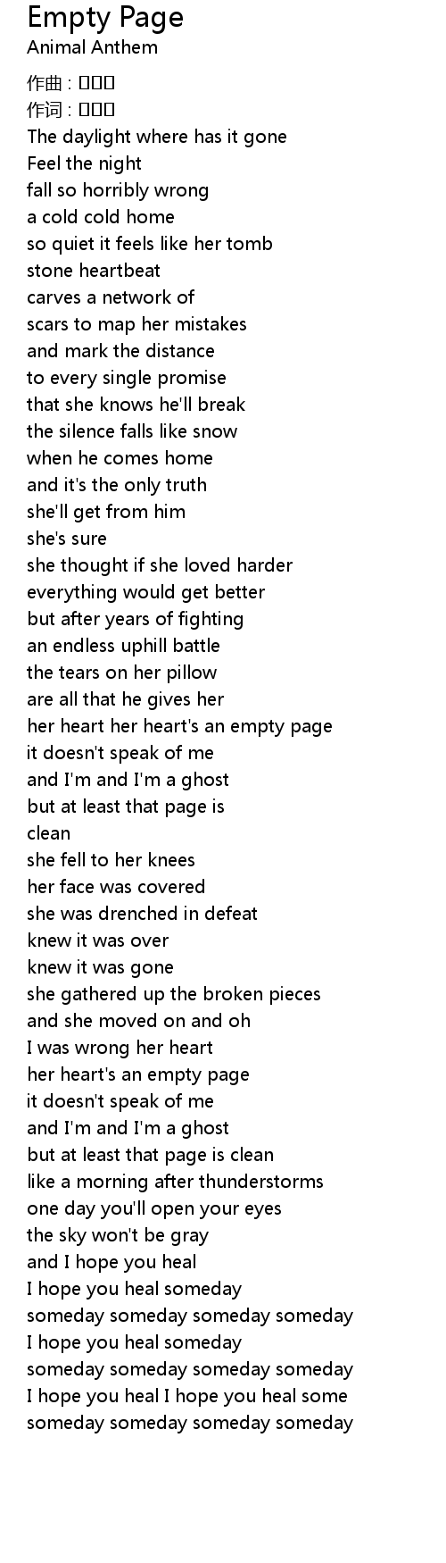 | her heart her heart's an empty page | |