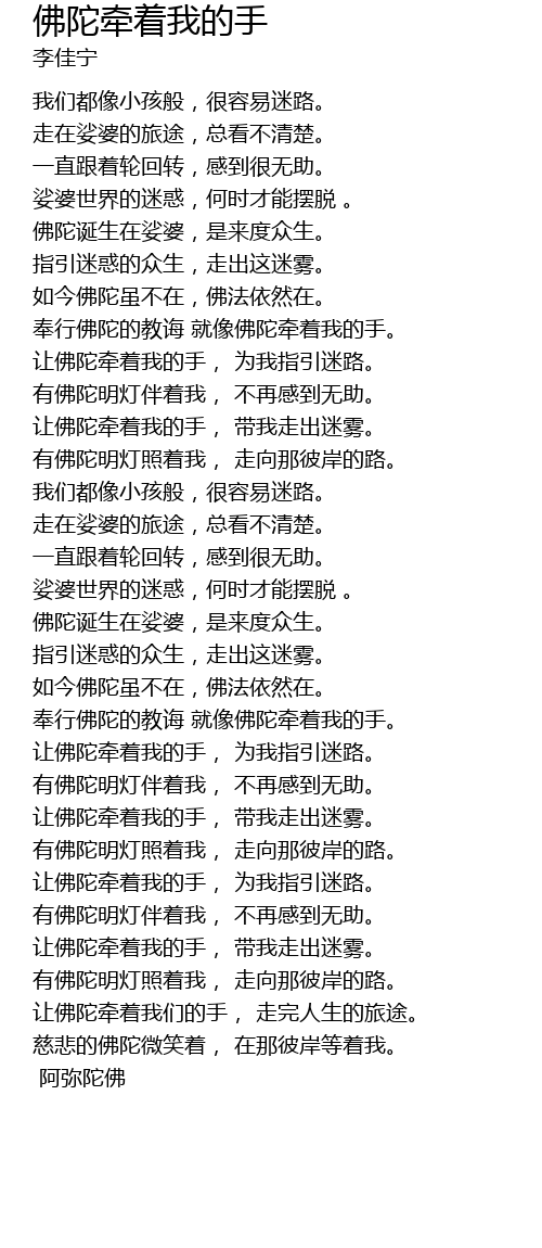 | [01:43.75] | 让佛陀牵着我的手, 为我指引迷路。 |