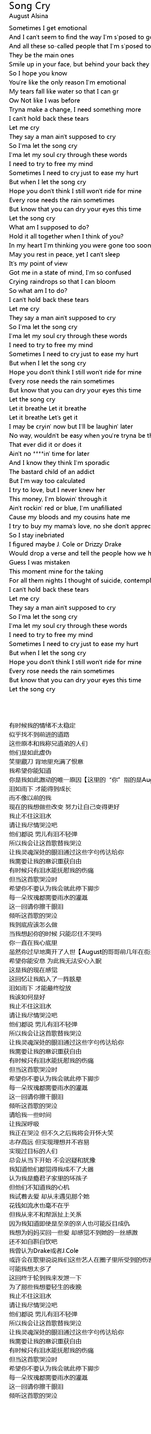 So I'ma let the song cry |
