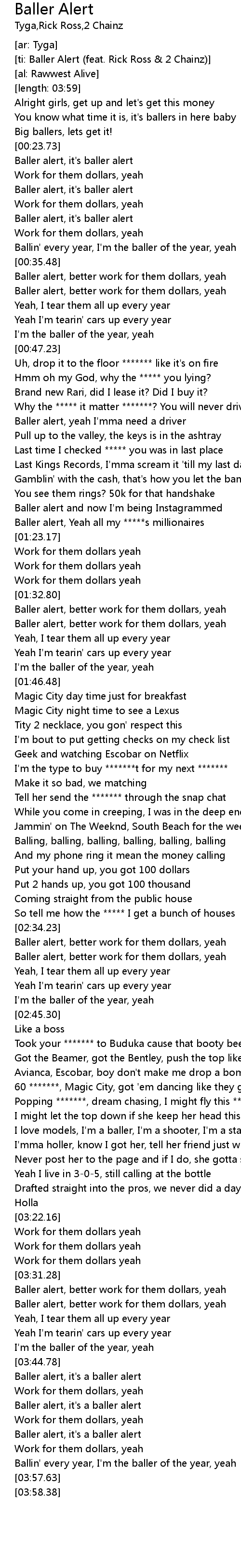 | [02:34.42] | Baller alert, better work for them dollars, yeah |