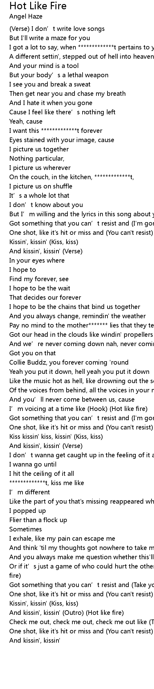| But I' m willing and the lyrics in this song about you Hook Hot like fire | |
